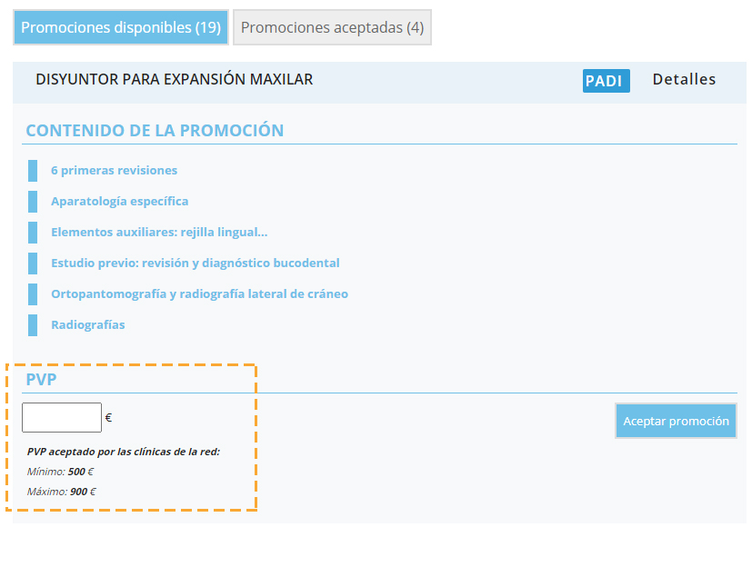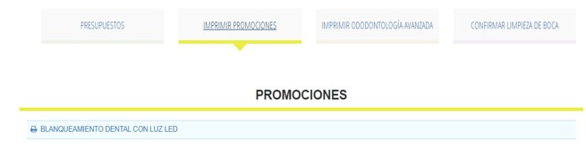 Si queremos ofrecer al paciente uno de los tratamientos en promoción o de odontología avanzada que hemos aceptado con anterioridad, podemos hacerlo desde los accesos habilitados para ello: