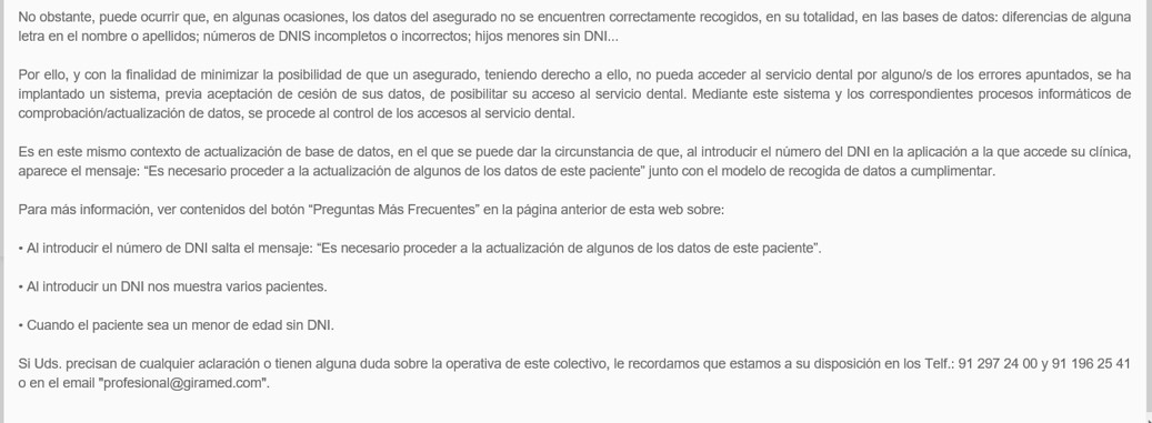 - Preguntas frecuentes: podrá consultar una serie de cuestiones que nos han trasladado clínicas de la red con una pequeña nota aclaratoria.