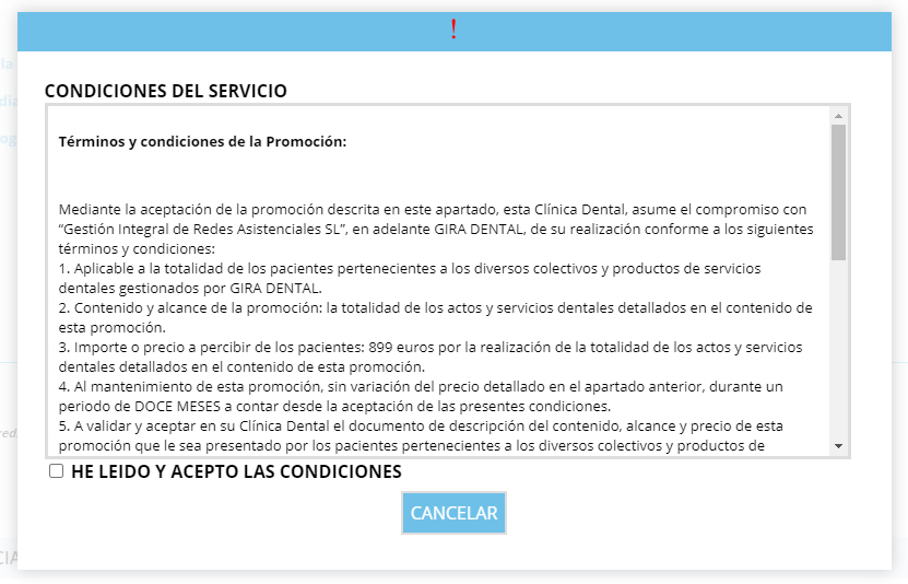 A continuación, aparecerán las condiciones generales de la promoción seleccionada y debe marcar la casilla "HE LEIDO Y ACEPTO LAS CONDICIONES".