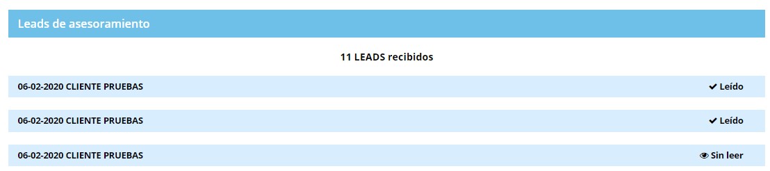 Accediendo a "Leads de asesoramiento" podrá ver aquellas solicitudes de asesoramiento online que le hayan solicitado los pacientes y su estado de tramitación.