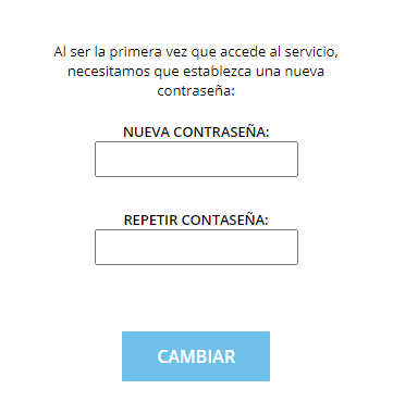 La contraseña será válida sólo para el primer uso. Al entrar por primera vez, se le pedirá que introduzca una nueva contraseña. Debe escribirla en los 2 nuevos campos que aparecen en blanco (la contraseña debe tener un mínimo de 6 caracteres).