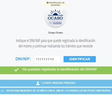 Ya ha quedado registrada la identificación del DNI/NIF, esta identificación es necesaria cada vez que un paciente acude a la clínica.
