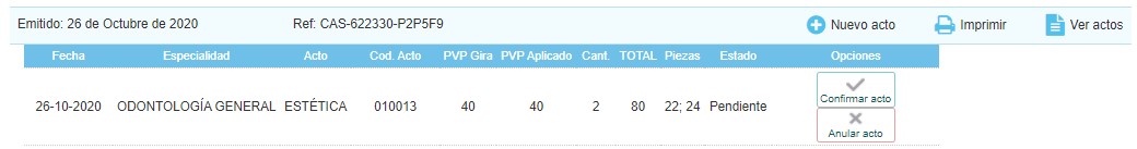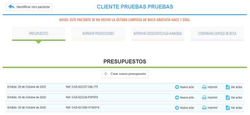 Para confirmar una limpieza de boca, si no queremos crear un presupuesto y solamente registrar esta gratuidad, podemos utilizar el botón de confirmación directa que se muestra a continuación.