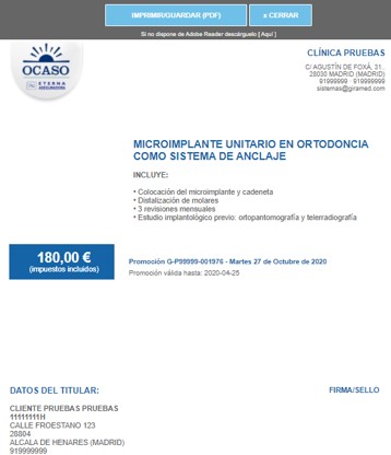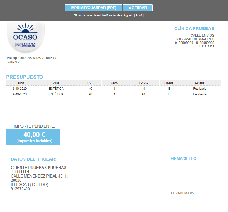 Una vez creado el presupuesto, podrá imprimirlo con el logo del colectivo al que pertenece el paciente: