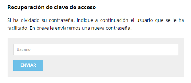 Si aparece el aviso de que las credenciales no son las correctas y ha olvidado la contraseña, debe pinchar en "¿Has olvidado tu contraseña?" para establecer una nueva (recuerde que la contraseña debe tener una longitud mínima de 6 caracteres).